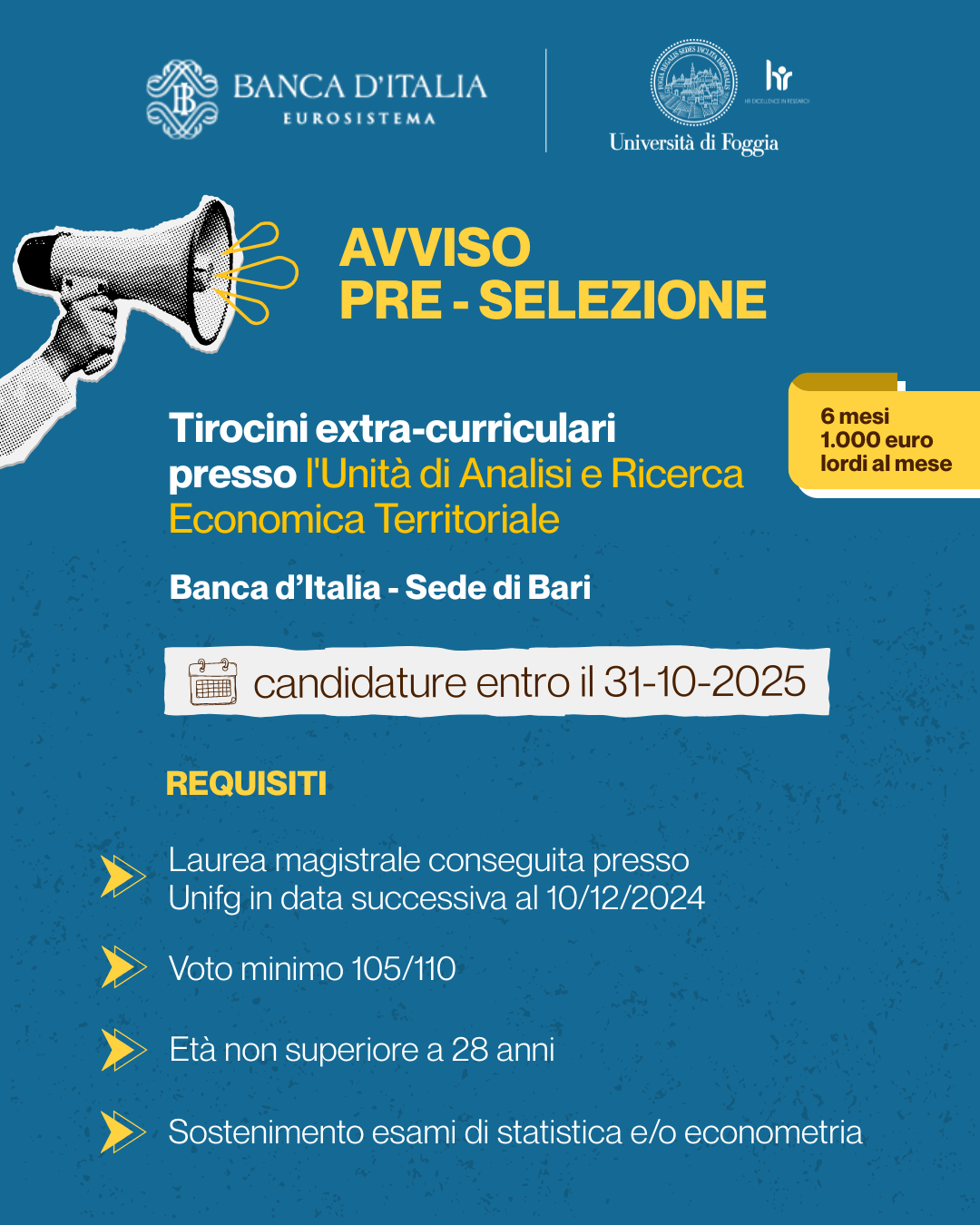 https://www.unifg.it/it/servizi-e-opportunita/opportunita/stage-e-placement/tirocini/tirocini-extra-curriculari-presso-lunita-di-analisi-e-ricerca-economica-territoriale-della-banca-ditalia-sede-di-bari